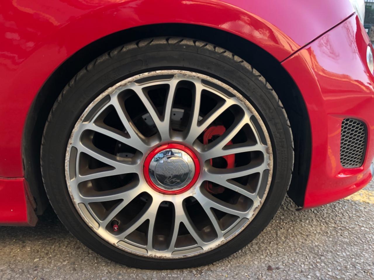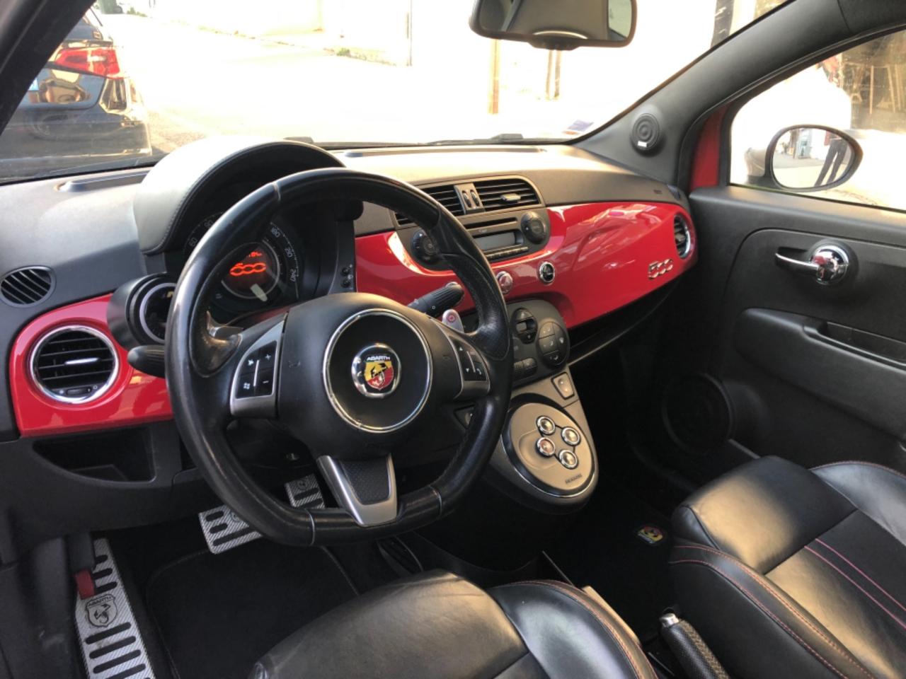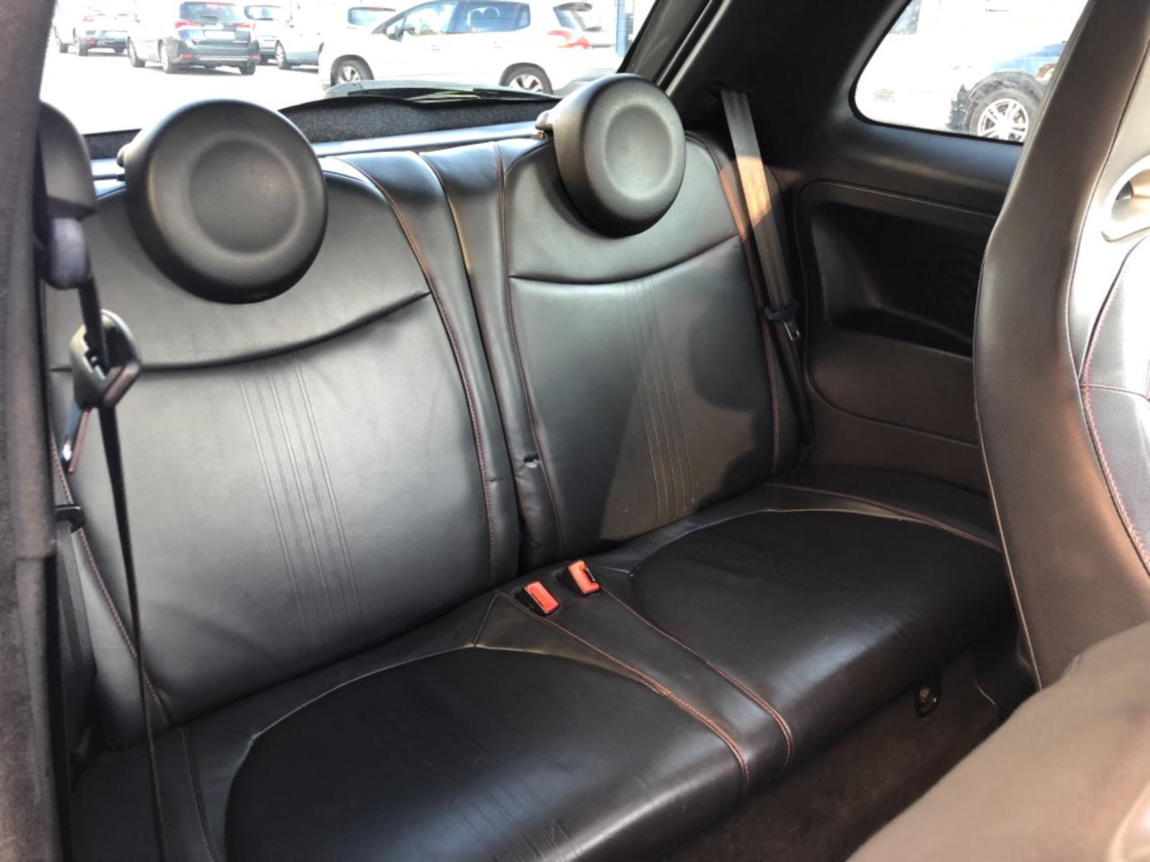 ABS – antiblocage des roues avec répartiteur de freinage EBDAirbag genoux conducteurAirbags conducteurAirbags latéraux avantAirbags rideauxAppuie-têtes arrière réglables en hauteurASR (antipatinage) et « Hill Holder » (système d'aide au démarrage en côte)Assistance au freinage d'urgenceAutoradio/CD/MP3, (30 W, 4 haut-parleurs + 2 haut-parleurs tweeters), commandes radio au volantBanquette AR rabattable 50/50Blue & Me : Système info-télématique Bluetooth avec connexion USB & interface MicrosoftClimatisation automatiqueCondamnation centralisée des portes avec télécommande d'ouverture à distanceDésactivation de l'airbag du passager avantDirection assistée DualdriveDouble sorties d'échappement chroméeESP (contrôle électronique de stabilité) avec MSR (régulation de l'inertie moteur)Etriers de frein rougesFiltre à air "powered by BMCFixation Isofix pour siège enfant à l'arrièreGSI (Gear Shift Indicator) :système d'indication de changement de rapportJantes en alliage DIAMANT 17" x 7J avec pneus 205/40 R17 non chaînablesJupes latérales dans la teinte de la carrosserieKit fumeur (allume-cigare et cendrier nomade)Kit réparation de pneu "Fix & Go" avec bombe anti-crevaisonKit Turismo BVA - Seuils de porte en alu , pédalier, kits de tapis noirs, bouchon de carburant en aluLève-vitres électriquesManomètre de mesure de pression du turboMode Sport : fonction qui agit sur les performances moteur, sur le système de freinage, ainsi que sur la directionOrdinateur de bord avec horloge numérique, informations itinéraire et indicateur de température extérieurePhares antibrouillard avant intégrésPoignées de portes chroméesProjecteurs Xénon avec lave-pharesRétroviseur intérieur électrochromeRétroviseurs extérieurs couleur carrosserieRétroviseurs extérieurs électriques et dégivrantsSellerie en cuir spécifique 'Abarth' (inclut les accoudoirs intérieurs des panneaux de porte en simili cuir)Siège conducteur réglable en hauteurSpoiler arrière couleur carrosserieTTC (Torque Transfer Control) : contrôle électronique du transfert de coupleVitres arrière et lunette arrière privativesVolant réglable en hauteur
