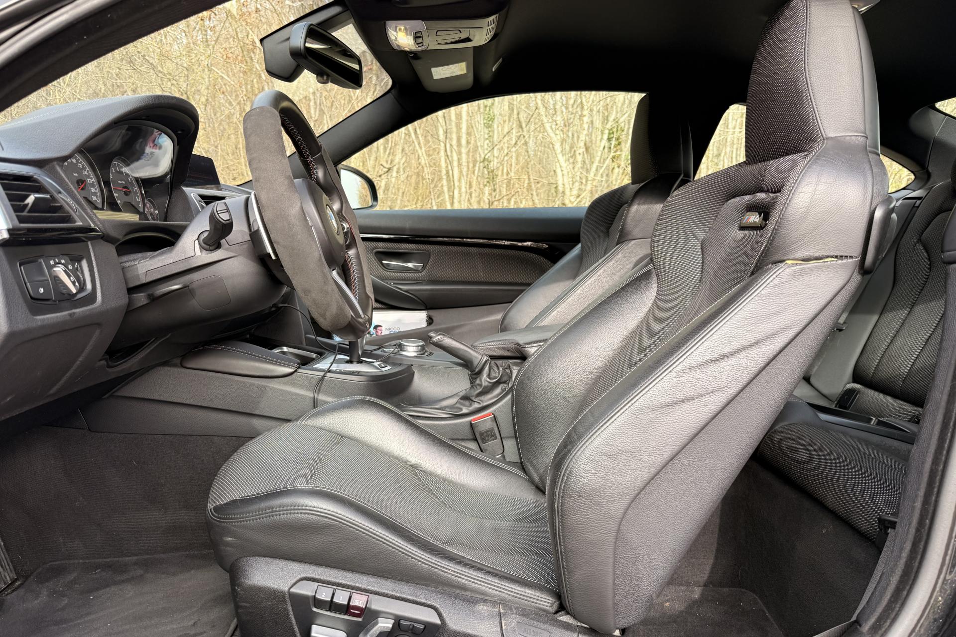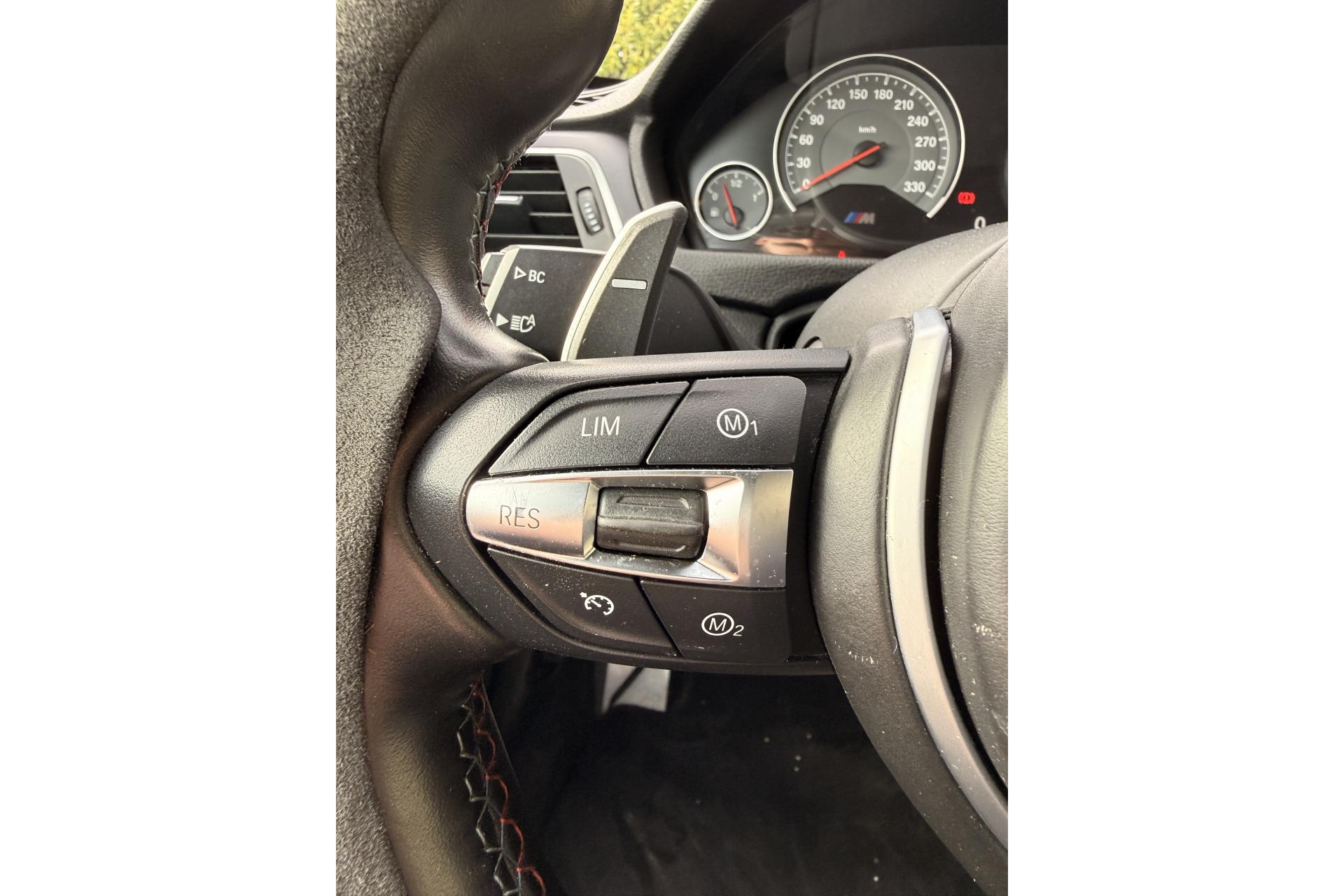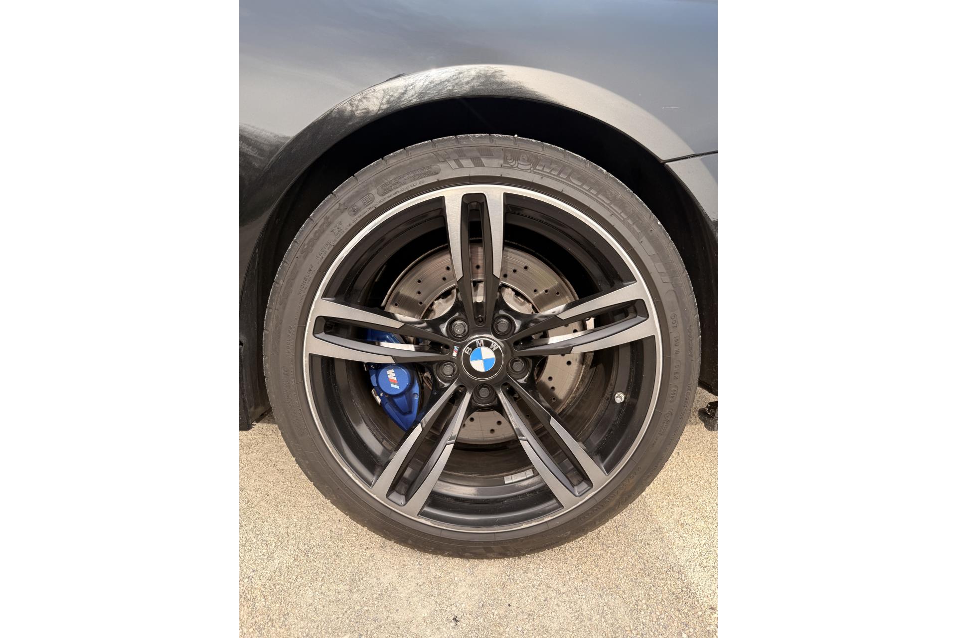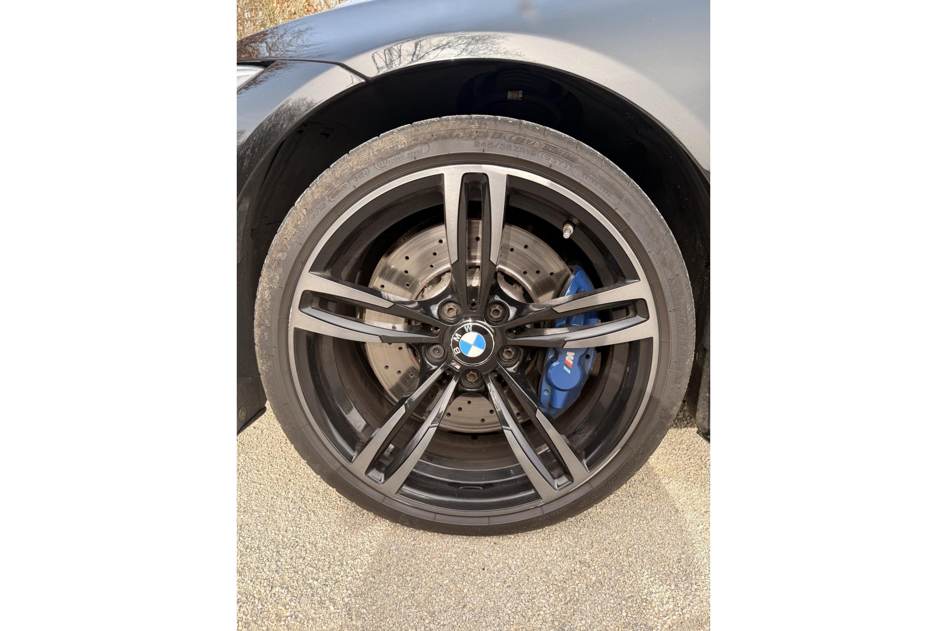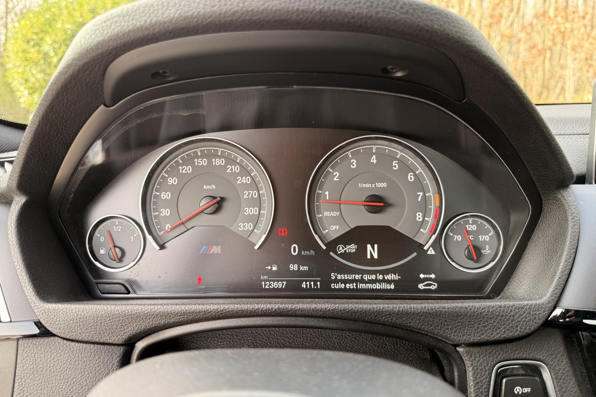 2 porte-boissons dans la console centrale avantABS (Antiblocage de roues)Accoudoir central avant coulissantAirbags frontaux conducteur et passager (déconnectable côté passager)Antenne de toit « aileron de requin »Appel d'Urgence IntelligentAutoradio BMW Professional CD compatible MP3, 6 haut-parleurs, prise AUX-IN, port audio USB, double Tuner, RDS et streaming audio Bluetooth (avec "Music Search")Baguettes de seuils avec inscription BMW MBanquette arrière 2 places avec dossiers rabattables asymétriquement 60/40Barre anti-rapprochement en fibre de carbone sous le capot moteurBoîte de vitesses M DKG 7 rapports à double embrayage avec DrivelogicCarnet d'entretien électronique embarqué "BMW Service History"Ciel de pavillon anthraciteClimatisation automatique 3 zones avec filtre microporeux et fonction de recyclage d'airDémarrage sans clé via le bouton de démarrage Start/Stop avec contour chroméDétecteur de pluie et allumage automatique des projecteursDétection de l'occupation du siège passager avantDifférentiel Actif M à commande électronique avec blocage du couple variant de 0 à 100%Direction à assistance électrique variable en fonction de la vitesseEclairage plafonnier soft-on/soft-off et éclairage du coffreEcran d'information central couleur 8.8" (22,4 cm) avec commande par "Controller" iDrive et 8 touches de raccourcis programmablesEcrous antivolFonction d'arrêt et de redémarrage automatique du moteurFreins à disques perforés hautes performances à étrier fixe peint en bleuGestionnaire M DriveInterface Bluetooth pour téléphone portable (mains-libres)Jantes en alliage léger 19" style 437 M à rayons doubles avec monte pneumatique mixte bicolores ''Ferricgrau''Limiteur et régulateur de vitesse avec maintien de la vitesse en descenteMotorisation BMW M TwinPower TurboNavigation multimédia ProfessionalOrdinateur de bord, Check-Control et indicateur de température extérieureProjecteurs Advanced Full LED avec quatre anneaux lumineux blancs à technologie LED pour éclairage diurneRadars de stationnement avant et arrière PDC avec représentation graphique des obstacles sur l'écran d'information centralRepose-pied conducteur siglé "M"Sélecteur de mode de conduite - 3 modes : "Efficient", "Sport", "Sport+"Services BMW ConnectedDriveSièges avant électriques à mémoires conducteur avec soutien lombaireSorties d'échappement rondes, doubles et chromées de chaque côtéTapis de sol en veloursTriangle de présignalisation avec kit de premiers secoursVerrouillage centralisé avec télécommandeVolant M gainé cuir avec touches multifonctions, deux touches M Drive