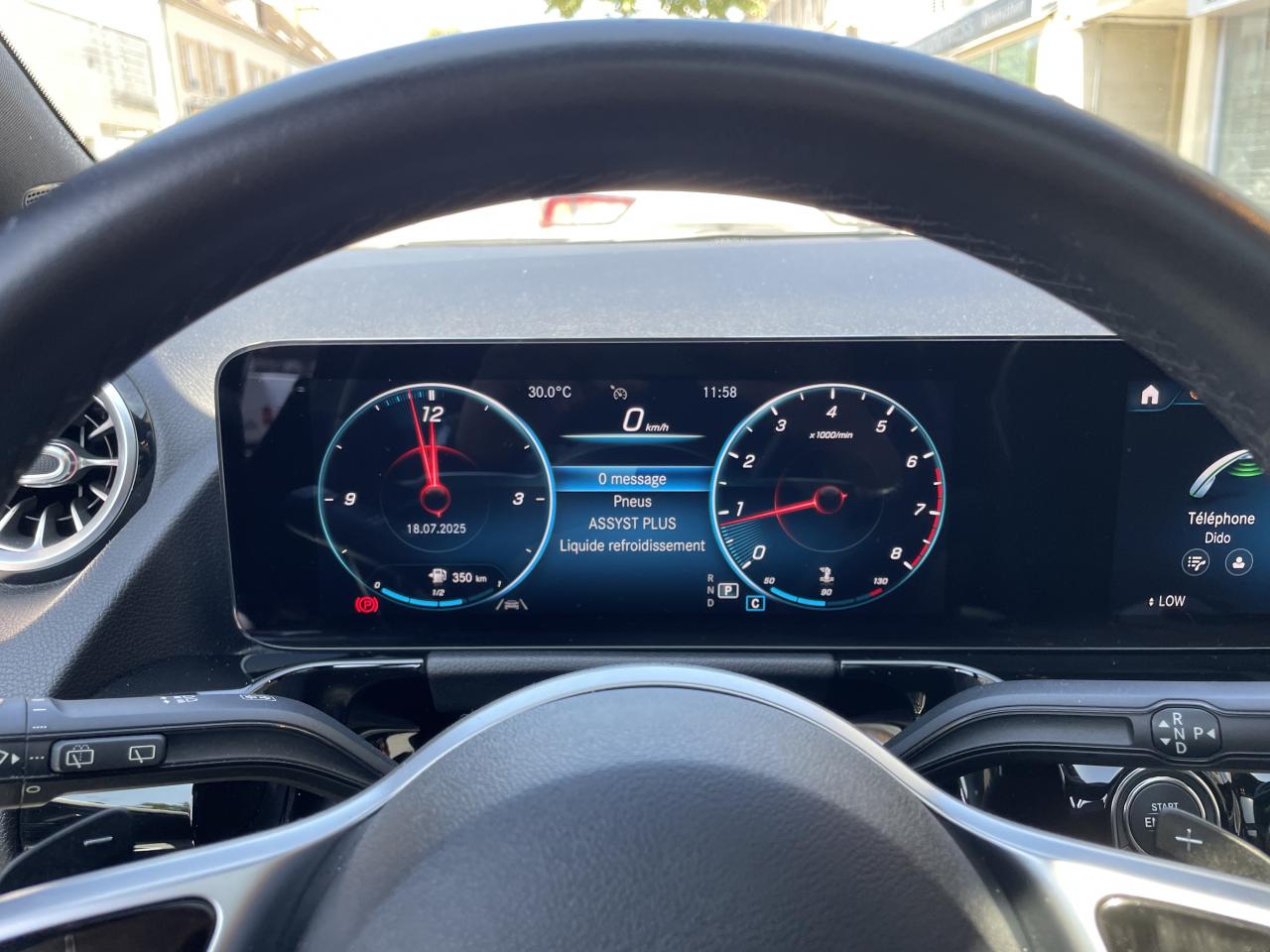 ABS (antiblocage de roues) et ASR (antipatinage)Accoudoir central AV avec bacs de rangementADAPTIVE BRAKE avec fonction HOLD et aide au démarrage en côte, préremplissage et séchage des freins par freinage en cas de pluieAffichage du non bouclage des ceintures de sécurité aux places arrièreAirbag frontaux conducteur et passagerAirbag genoux conducteurAirbags latéraux pour le conducteur et le passager avantAirbags rideauxAttention Assist : système de détection de somnolenceAvertisseur d'angles mortsAvertisseur de franchissement de ligne actifBaguette de seuil de chargement chroméeBAS (freinage d'urgence assisté)Boîte à gants éclairéeBuses d'aération noires avec cerclage chromée argentéeCapot moteur actif pour la protection des piétonsCiel de pavillon en tissu noirClé de véhicule sertie de chromeClimatisation automatique THERMOTRONIC à 2 zones avec filtre à charbons actifs contre la poussière, la suie et le pollenConnexion Bluetooth pour téléphone portableConsole centrale avant avec deux porte-gobeletsDésactivation automatique de l’airbag passager avantDirection paramétrique assistée et asservie à la vitesseDossier de siège arrière rabattable 40/20/40DYNAMIC SELECT avec les programmes de conduite « ECO », « Confort », « Sport » et « Individual »Eclairage du coffreFeux de stop adaptatifsFilet à bagages dans le coffreFilet au dos des sièges avantFixations de siège enfant i-Size à l'arrièreFonction Stop/Start ECOFrein de stationnement électriqueFrein multi-collisionFreinage d'urgence assisté actifGarnitures intérieures en Tissu/Similicuir ARTICOGrille de calandre à une lamelle peinte en argent mat avec insert chroméHayon électrique EASY-PACKInserts décoratifs façon spiraleJantes alliage 18" à 5 doubles branches argent vanadiumKEYLESS-GO : système de démarrage sans cléKit anti-crevaison TIREFITLigne de ceinture et baguette décorative en chromeMercedes connect me : Système d'Appel d'Urgence Mercedes-BenzModule de communication LTE pour l'utilisation des services Mercedes me connectPack rétroviseursPack Stationnement avec caméra de reculPack visibilitéPare-soleil avec miroirs de courtoisie éclairésPavé tactile TouchpadPeinture métalliséePré-équipement pour l'autopartage via l'application Mercedes me Car SharingPré-équipement pour Live Traffic Information (service gratuit pendant 3 ans après activation Mercedes me)Pré-équipement pour services à distance (service gratuit pendant 3 ans après activation Mercedes me)Prise 12 V dans l'espace de chargementPrise 12 V dans la console centraleProjecteurs hautes performances à technologie LEDProtection anti-encastrement design en chrome brillant à l'avant et à l'arrièreRadio Numérique DABRainsensor (Capteur de pluie et de luminosité)Rampes de toit aluminiumReconnaissance des panneaux de limitation de vitesseRétroviseurs extérieurs couleur carrosserieRevêtements noir grené avec parties chromées sur les parties latéralesSièges AV confortsSièges avant avec réglages de la hauteur et de l'approche du siège, de l'inclinaison du dossier, de l'inclinaison de l'assise, de la profondeur de l'assiseSorties d'échappement apparentes en chrome (non fonctionnelles)Système de commande vocale et assistant personnel activable grâce à "Hey Mercedes"Système de contrôle de la pression des pneusSystème de navigation par disque dur avec affichage 3DSystème de stabilisation en cas de vent latéralSystème multimedia MBUX avec écran média tactile haute résolution (1 920 x 760 pixels) de 26 cm (10,25'') et instrumentation digitale avec écran de 18 cm (7") incluant les fonctionnalités élargies MBUX (profils personnalisés, fonTapis de sol en veloursTapis réversible dans le coffreTEMPOMAT (régulateur de vitesse) et SPEEDTRONIC (limiteur de vitesse)Top Tether pour 2e rangée de siègesTrain de roulement confortUn port USB dans le vide-poche et un port USB sur la console centrale arrièreVide poche sur la console centrale avec couvercle à enrouleurVitres latérales et lunette arrière teintées foncéesVolant sport multifonction en cuir avec boutons Touch-Control