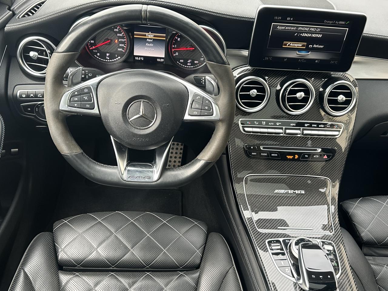 ABS (antiblocage de roues) et ASR (antipatinage) on et off-roadAccoudoir central avant avec vide-poches et prise 12VAirbags latéraux avantAllumage automatique des projecteursAttention Assist : système de détection de somnolenceBaguettes de seuil AMG en acier inoxydable brosséBoîte à gants éclairéeBoîte de vitesses sport à 9 rapports SPEEDSHIFT MCT AMG avec fonction RACE STARTCapteur de pluieCiel de pavillon noirColonne de direction réglable mécaniquement en hauteur et en profondeurCombiné d’instruments AMG avec appliques rougesConnexion Bluetooth pour téléphone portableContrôle de la pression des pneumatiquesDéflecteur AMG sur le toit dans le ton carrosserieDétecteur d'angle mort actifDétecteur d'occupation du siège passager avantDétection automatique de siège enfant intégré dans le siège passager avantDYNAMIC SELECT AMG avec 5 modes de conduiteEclairage d'ambianceESP (régulation de comportement dynamique) avec ASR (antipatinage)Feu de brouillard AR à LEDFeux arrière à LEDFeux stop adaptatifs à diodes LEDFilet à bagages dans le coffreInterface média USB dans l'accoudoir central avant (2 ports USB)KEYLESS-GO : système de démarrage sans cléMonogramme « V8 BITURBO 4MATIC+ » sur les ailes avantPédalier sport en acier inoxydable brossé avec picots en caoutchoucPilote automatique de stationnement avec caméras 360°Rétroviseurs extérieurs électriques chauffants et asphériques avec rappels de clignotant intégrésSécurité enfant avec verrouillage manuel des portes arrière et électrique des vitres arrièreSièges avant chauffantsSièges avant chauffants et électriques avec fonction MémoiresSystème d'échappement sport AMG avec deux doubles sorties chroméesTEMPOMAT (régulateur de vitesse) et SPEEDTRONIC (limiteur de vitesse)Toit ouvrant panoramique électrique en verreTOUCHPAD : pavé tactile permettant la navigation dans les menus audio, téléphone et média sur l'écran couleur 17,78 cm (7")Train de roulement sport AMG basé sur le AIR BODY CONTROLTransmission intégrale AMG Performance 4MATIC+ avec répartition entièrement variable du couple