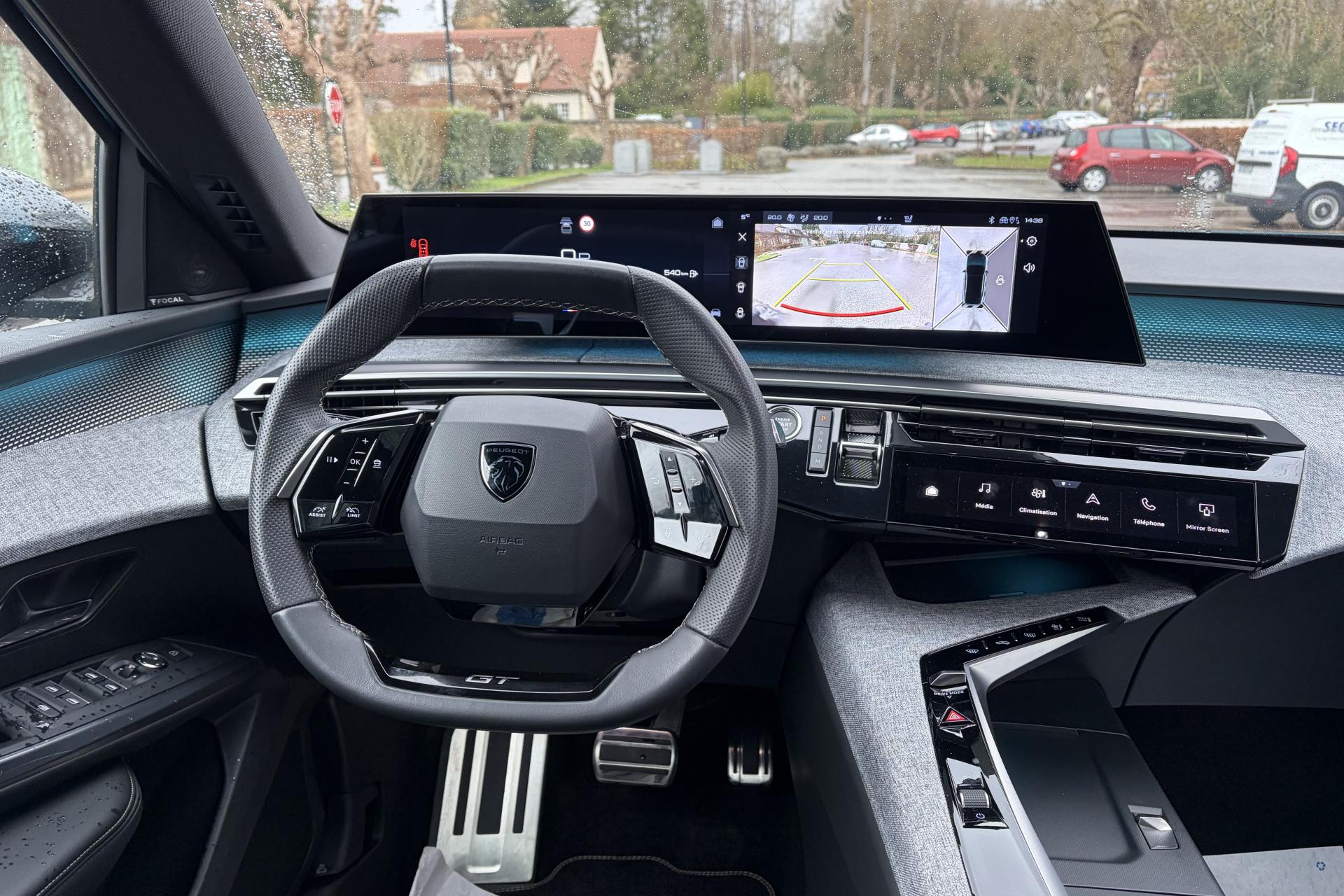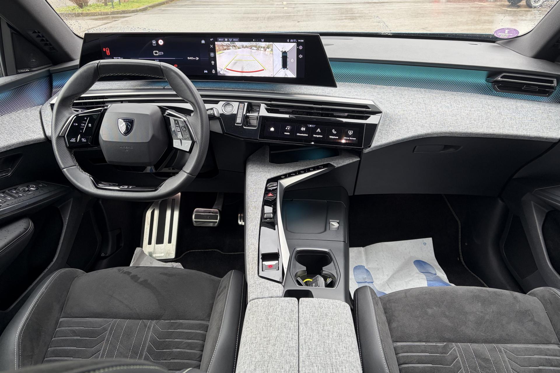 1 prise 12 V dans la console centraleToit ouvrant électrique et panoramique2 télécommandes 3 boutonsAccès et démarrage mains libres ProximityAir conditionné à régulation automatique 2 zonesAllumage automatique des projecteursBlason "3008" à l'avantBlason "Peugeot" sur ailes avantCommutation automatique des feux de routeEclairage d'ambiance indirect, jour & nuit sur la planche de bord, les panneaux de portes avant et sous l'écran panoramique 21'', associé aux modes de conduite, personnalisable en 8 couleursElargisseurs de passages de roues couleur noireESP avec aide au démarrage en penteEssuie-glace à déclenchement automatiqueFeux AR à griffes 3D LEDsFonction Bluetooth, Mirror Screen sans fil (Apple CarPlay/ Android Auto)Frein de stationnement électriqueFreinage d'urgence automatique piloté par caméra et radarHabitacle et ciel de pavillon noirHayon électrique mains libresJantes alliage 19'' diamantées BREDA Noir Orbital, vernis brillantJupe arriere inférieure Noir grainéJupe avant inférieure Noir grainéLève-vitres électriques avant et arrière, séquentiels et antipincementLimiteur de vitesseMonogrammes arrière ' HybridMonogrammes arrière '3008'Pare-chocs arrière avec décor Gris MeteorPédalier et repose-pied aluminiumPeinture métallisée Bleu ObsessionPeugeot i-Cockpit panoramique avec écran incurvé et flottant 21’’ HDProjecteurs Peugeot Pixel LED avec feux diurnes 3 griffes à LEDRecharge smartphone sans filRégulateur de vitesse adaptatif avec fonction Stop & GoSellerie Alcantara REFLECTION embossé accompagnement TEP Isabella, écharpe tissu RIMINI chiné, surpiqûres Iced ClaySièges avant chauffantsToit et becquet arrière Black DiamondVitres arrière, custodes et lunette arrière surteintéesVolant chauffantVolant compact, cuir fleur lisse et perforé avec commandes intégrées Noir Laqué, décors Cast Iron , surpiqûres Iced Clay, insert Noir laqué avec badge ‘GT’